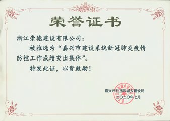 浙江省建筑業新冠肺炎疫情防控工作先進單位