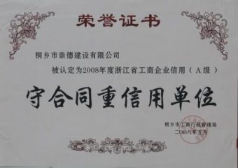 2008年度浙江省工商企業(yè)信用(A級(jí))守合同重信用